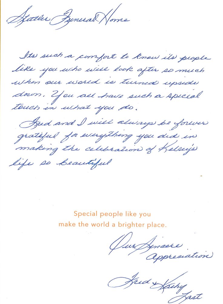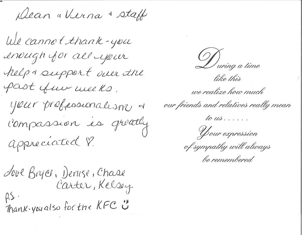 Your impression of the quality and value of our services is very important to us. We respectfully ask for your assistance in evaluating the services we provided, as this will enable us to provide the best possible care to others who turn to us in their time of need.